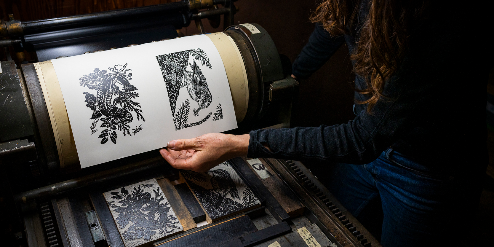 All of our products are intentionally created to embrace nature. Our textiles serve as functional pieces adorning your home or body. Our press offers custom services as well as handcrafted prints. Our goods feature wearable and usable accessories for a variety of occasions.