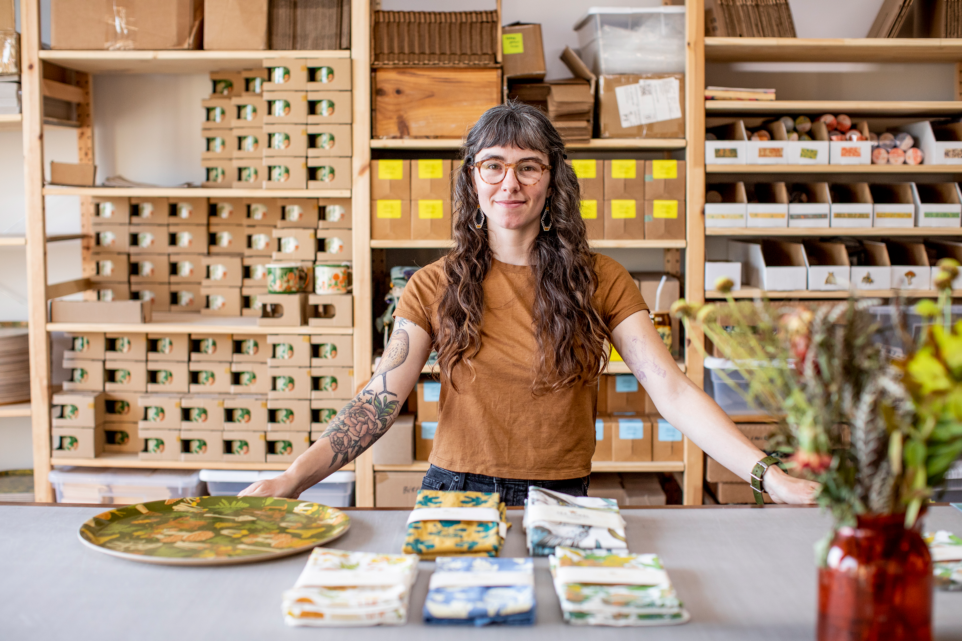 Mustard Beetle: Textiles, Press, & Goods is a small business by Elizabeth Jean Younce (she/her) established in 2015, currently based out of Los Angeles, CA. Through Mustard Beetle, Elizabeth Jean creates Illustrations which she translates to Prints on Paper & Fabric as well as other Goods. The Textiles are sustainably designed, dyed, printed. The Press offers custom printing solutions as well as prints and stationery for sale. The Goods offer more accessories and products such as pins and patches. In addition to the products she creates for her store, Elizabeth also specializes in surface design, large-scale murals, and freelance client work.